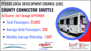 FY26 LDC County Connector Monthly Ridership ReportPosted on October 2, 2025By LGarrettIn County Connector County Connector Shuttle TransportationFacebookTwitterLinkedIn