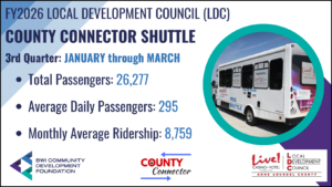 FY26 LDC County Connector Monthly Ridership ReportPosted on April 2, 2026By LGarrettIn County Connector County Connector Shuttle TransportationFacebookTwitterLinkedIn