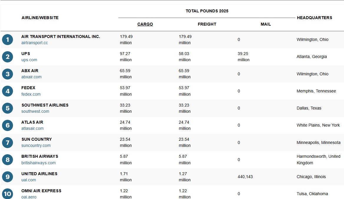 Information on the List was obtained through T 100 data compiled by the Bureau of Transportation Statistics. The T 100 is a mandatory monthly report filed by U.S. and foreign air carriers that details passenger, freight and mail traffic, along with capacity data, for flights operating to, from or within the U.S.