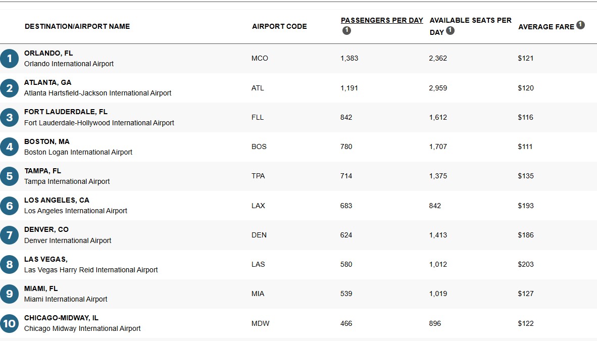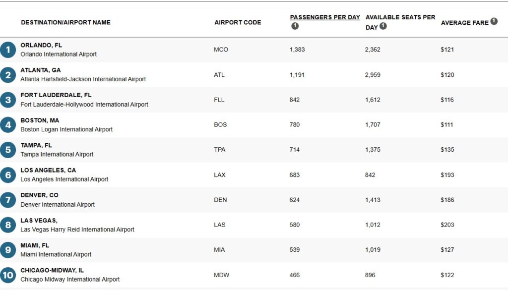 BWI Airport’s top domestic destinations